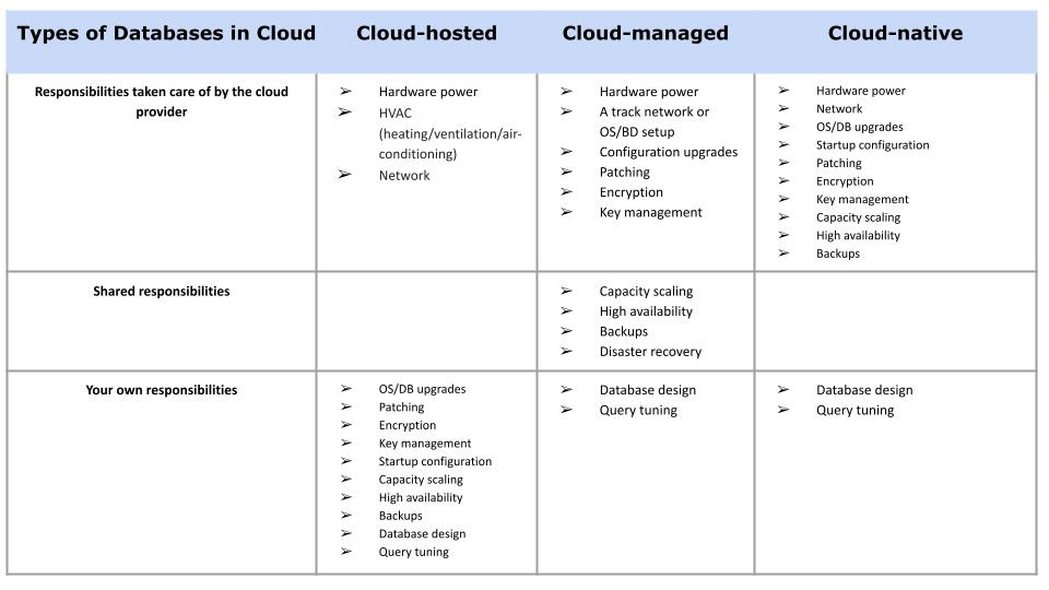 What is the difference between Cloud-hosted, Cloud-managed, and Cloud-native databases?